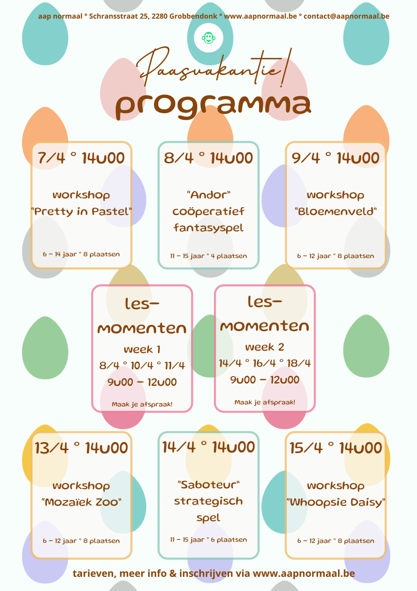 We maken het plezant tijdens de paasvakantie! Vier creatieve workshops én twee spelletjesmiddagen voor kinderen van 6 tot 15 jaar. Als dat geen fijn tijdverdrijf is.